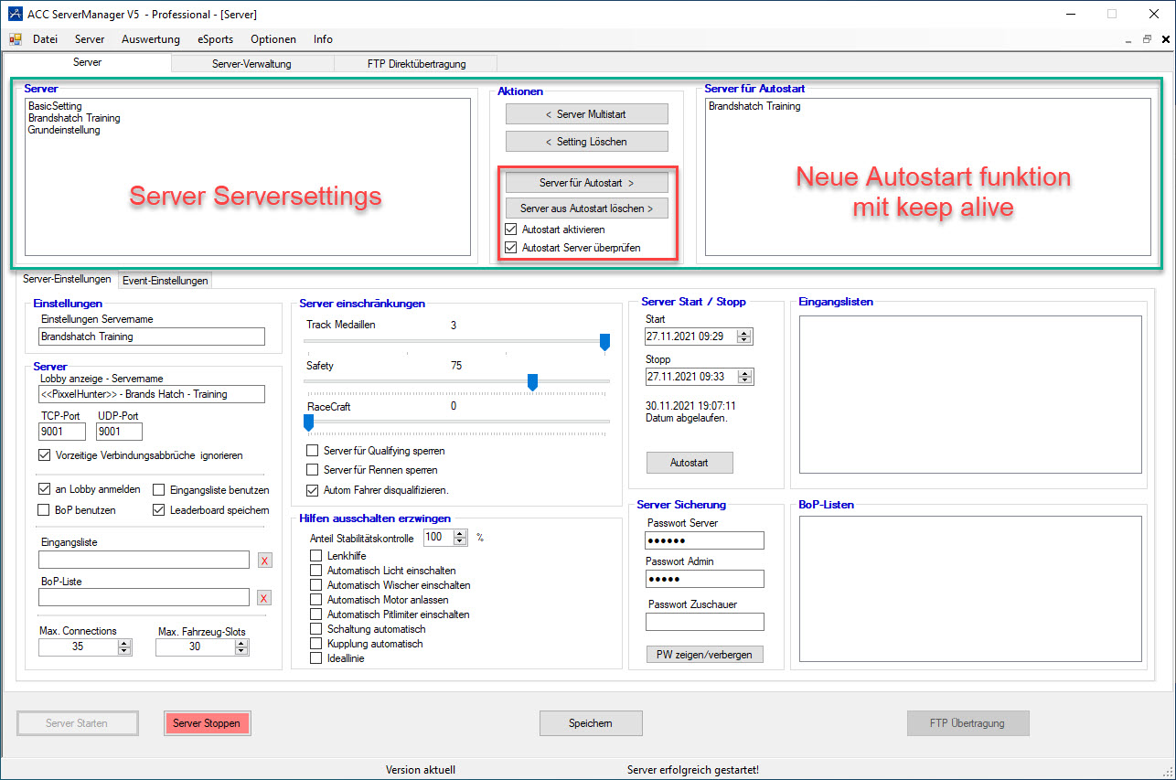 - NEU – SERVER – Autostart ausgewählter Server beim Start des ACCSM (Professional Version)
